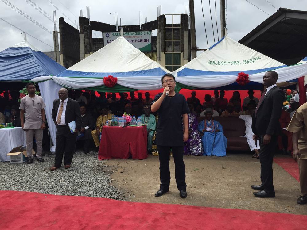 尼日利亚国家管理部副总经理姜立伟在开工典礼上讲话
