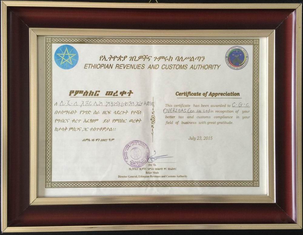 中地海外集团埃塞俄比亚公司受到埃塞税务海关总署表彰来源:中地海外集团 点击:837次
