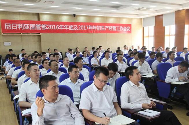 尼日利亚国管部召开2016年年底及2017年年初生产经营工作会议来源:中地海外集团 点击:599次 2016年12月31日至2017年1月2日,尼日利亚国家管理部召开了2016年年底及2017年年初生产经营工作会议及市场开发、财务管理、运营管理、人力资源管理四个专题研讨会。 会上,各区域及各职能部门汇报后,叶水金总经理发表讲话,要求进一步加强内部管理、团队建设、责任意识以及执行力和创新力,并为国管部2017年的发展做出全面规划和展望。 本次会议的召开,旨在全面分析和总结新形势、新情况,结合国管部实际和集团战略,为国管部2017年的发展做了全方位的战略规划和部署,具有重大意义,必将为公司在新常态下转型升级、加速发展产生重大而深远的影响。