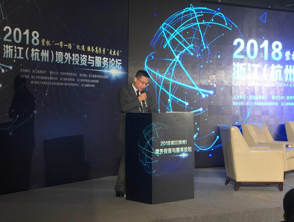 中地海外集团受邀出席2018浙江(杭州)境外投资与服务论坛来源:中地海外集团 点击:46次 2018年6月5日,由浙江省商务厅、杭州市商务委员会联合主办,浙江省境外投资企业协会承办的“2018浙江(杭州)境外投资与服务论坛”在杭州举行。中地海外集团副总裁孙国强受邀出席并主持论坛对话环节。论坛吸引了相关政府部门、金融机构、专家学者、各大服务机构以及省内知名企业300余人参加。期间,知名专家就新型国际格局与趋势关系、走出去合规体系建设、跨境并购路径以及“走出去”服务创新模式进行了分享,并针对热点问题现场为企业答疑互动。
