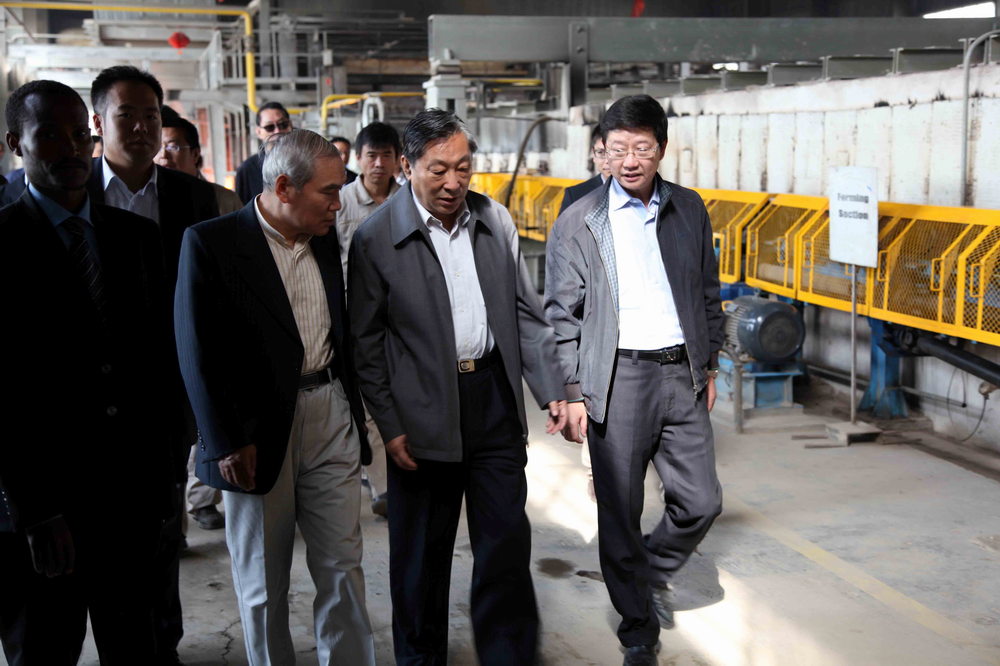 2013年9月26日,全国政协副主席齐续春在中国驻埃塞俄比亚大使解晓岩及经商处参赞钱兆刚等十余人的陪同下视察了我公司埃塞汉盛玻璃厂。 齐副主席饶有兴致地参观了玻璃厂生产车间,汉盛玻璃厂总经理肖勇就原料进口、玻璃生产、销售等情况向齐副主席做了简要汇报。齐副主席对埃塞玻璃厂作为埃塞工业化重要标志表示认可,同时指出,随着埃塞经济发展,工业化进程加快,玻璃厂效益也一定会提升。视察过程中,齐副主席慰问了生产一线员工,并合影留念。