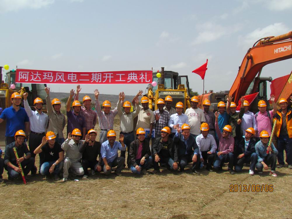2013年7月6日,埃塞俄比亚ADAMA风电二期项目正式开工。ADAMA风电二期项目总装机容量153MW,合同工期20个月,由中地海外与中水顾问组成的联营体项目部组织实施。