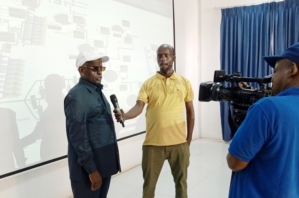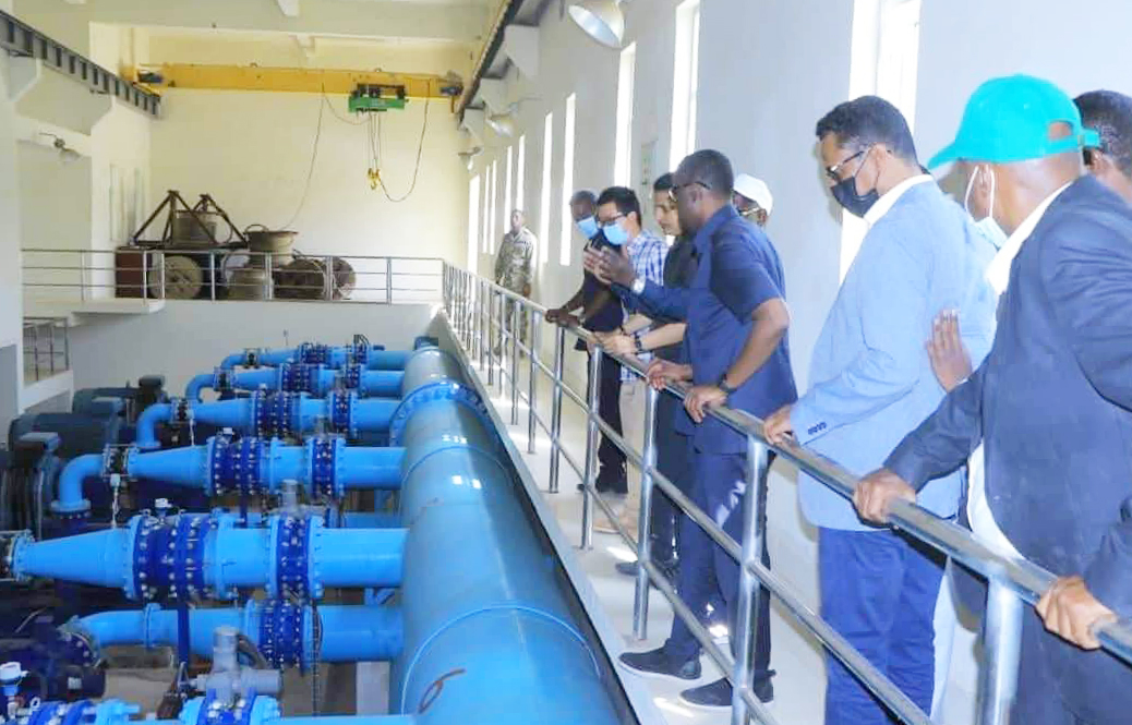 吉布提总理(前左一)和索马里副州长(前右一)参观Kulen泵站 吉布提总理Abdoulkader Kamil参观了项目Adigala泵站和Kulen泵站,并在Kulen泵站控制室与索马里州副州长Ibrahim Usman进行了会谈。 总理阁下表示该项目为吉布提一市三镇提供了清洁的饮用水,不可或缺,希望通过此次考察,了解和解决项目存在的问题,提升供水能力。期待中地海外公司继续做好运行维护,保障稳定供水,待井区完成全部接电后,帮助吉布提结束缺水历史。