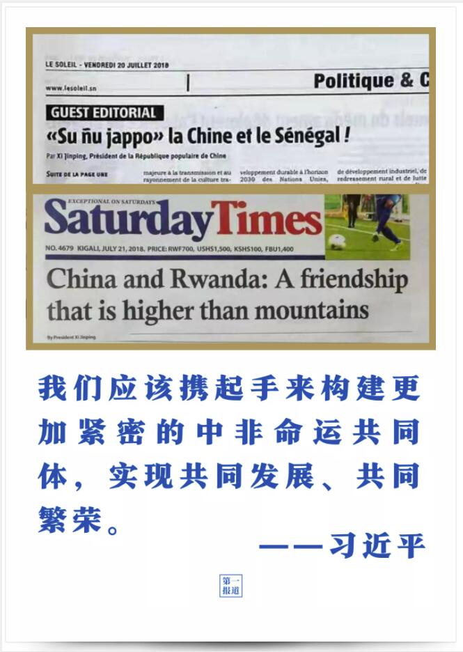 原文转载: 2018年7月,在对塞内加尔和卢旺达进行国事访问前夕,习近平主席在塞内加尔《太阳报》和卢旺达《新时代报》发表署名文章,提及多个中非合作的生动故事。 以人民为中心,深化伙伴关系,成果惠及人民。习近平主席提出真实亲诚理念,同非方领导人共同擘画中非关系发展蓝图,引领中非合作向前迈进。 在习近平主席的关心下,一批批看得见的惠民项目稳步落地,成为中国同非洲乃至发展中国家团结合作的见证——