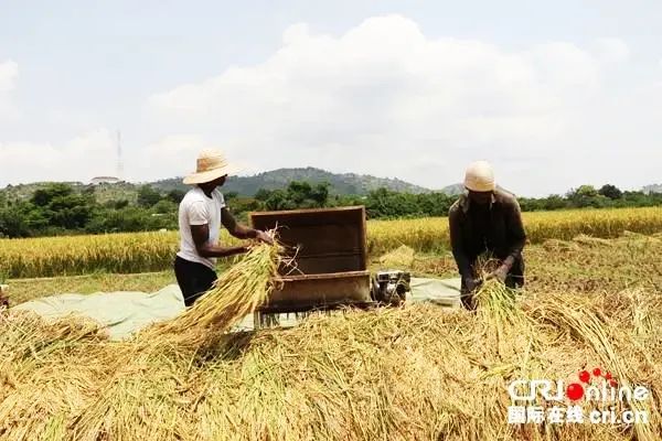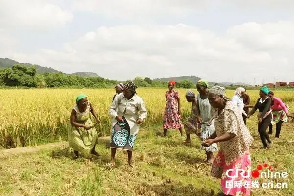 稻农在收获的稻田里载歌载舞庆丰收 来自尼日利亚国家农业种子委员会、农业研究委员会、国际热带农业研究所的专家及当地农户听得津津有味,稻农们则在收获的稻田里载歌载舞地表达着丰收的喜悦。