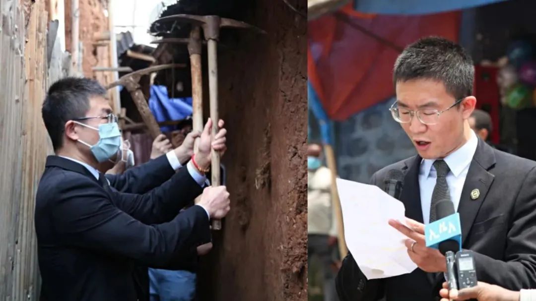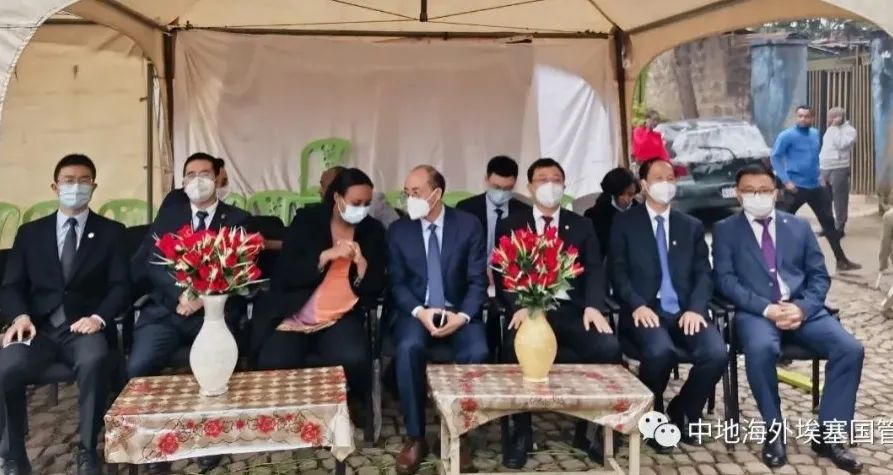 驻埃塞俄比亚使馆公使衔经济商务参赞杨依杭(左四)、埃塞俄比亚投资委员会主任莱丽萨·内米(左三)出席活动 启动仪式上,中地海外埃塞国管部副总经理孙见琼代表公司发言。他表示,中地海外扎根埃塞多年,一直为改善当地民生做出积极努力;今后我司愿一如既往同埃塞人民共同携手,推动以社区为单位的社会支持计划稳步落地。