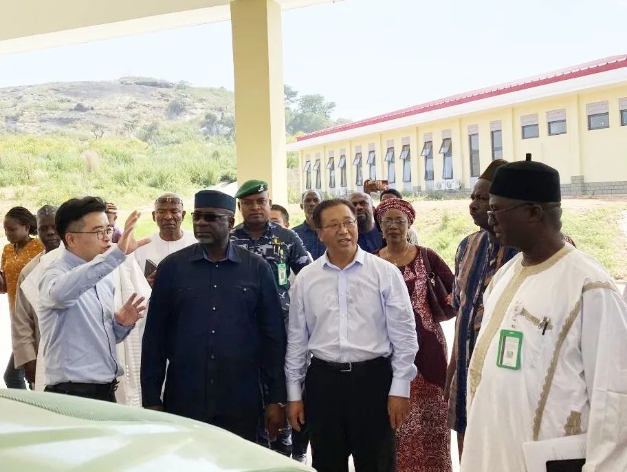 考察团还参观了阿布贾产业园区的水稻试验田,听取了我司水稻专家王学民对水稻品种试验情况的介绍。 项目简介: 中国援尼日利亚农业技术示范中心项目(以下简称“项目”) 位于尼日利亚首都阿布贾BWARI区,总占地面积31.38公顷,包括农业技术培训中心、农业技术研究和服务中心、农资农机展示中心、小型农产品加工技术展示中心、动力中心、光伏水泵节水灌溉系统、水坝周边农田示范区,以及进场道路、水坝两岸高程以上配套工程等。