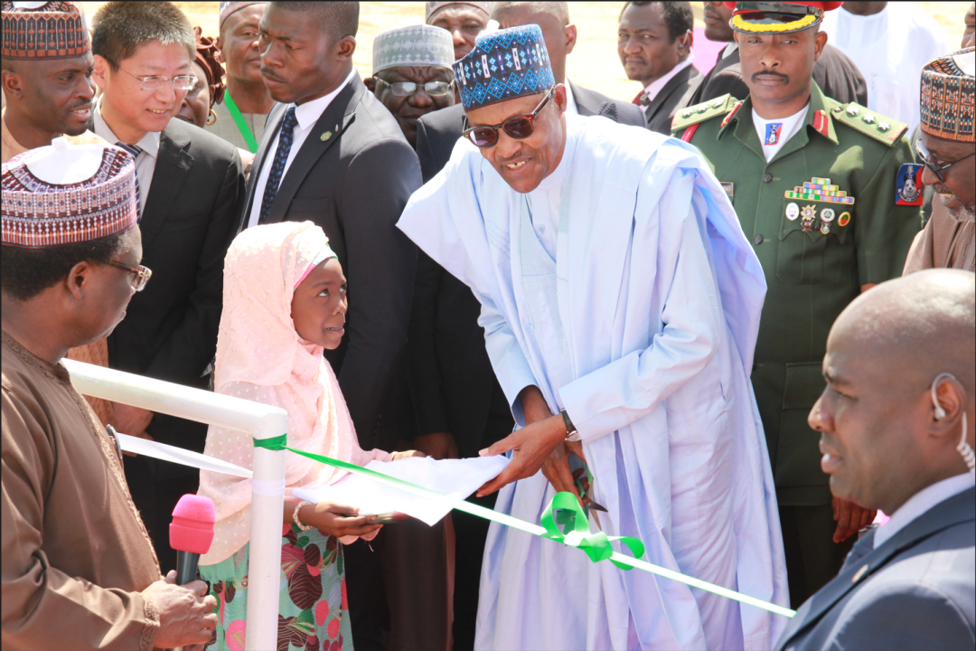 尼总统布哈里出席我司承建的Hadejia灌溉项目竣工剪彩仪式来源:中地海外集团 点击:188次 当地时间1月31日中午12时30分许,由我司中领事业部承建的Hadejia灌溉项目在Jigawa州Auyo区隆重举办竣工剪彩仪式。尼日利亚总统布哈里在直升机的护卫下乘专机抵达活动现场,出席项目竣工剪彩仪式。