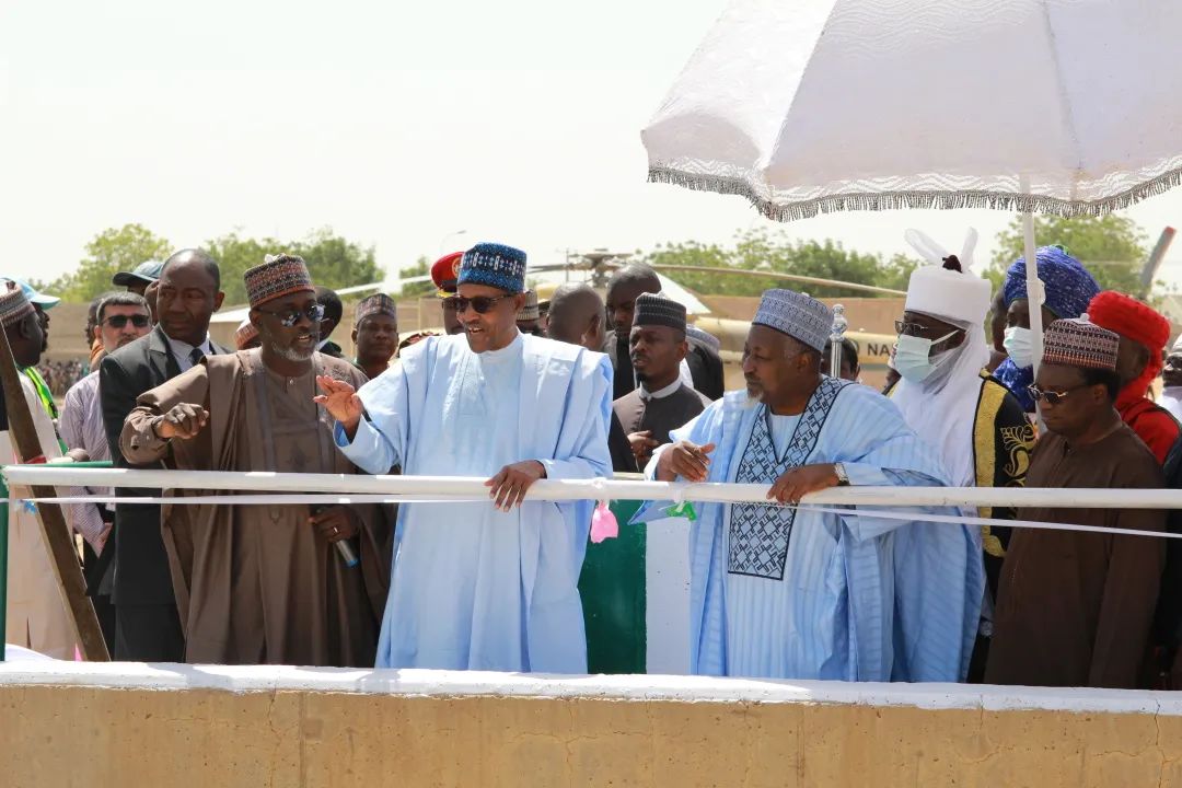 联邦水资源部部长向总统布哈里介绍项目 尼联邦水资源部部长苏莱曼·阿达姆、吉加瓦州州长穆罕默德·阿布巴卡尔、世行代表松本淳先生、公司副总经理樊孝静等领导到场出席活动。