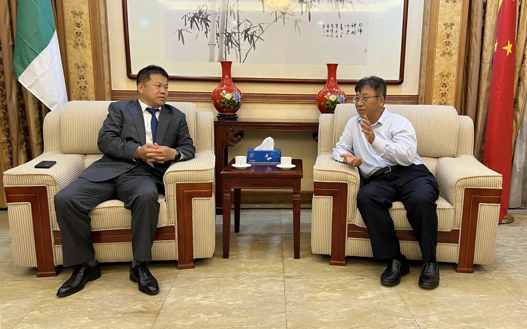 6月12日,兰眉中董事长一行拜会了中国驻尼日利亚大使崔建春、公使衔经济商务参赞王颖琦,双方就尼日利亚当前政治经济情况、加强中国与尼日利亚未来多领域的合作进行了广泛交流。 崔建春大使表示,中地海外在尼日利亚长期扎根,作为尼日利亚中国总商会的常务副会长单位、公共关系办公室会长单位等,始终积极协助并支持使馆落实各项工作,做出了突出贡献,对此表示感谢。崔大使表示,尼日利亚市场体量巨大,新政府将着力经济建设,未来发展可期。兰眉中董事长表示,中地海外将在未来发挥自身优势,依托上级单位的资源和支持,希望在更大范围、更宽领域、更深层次上参与规划和发展,为推动中尼双边经贸合作、公共关系、安全事务等各方面做出积极的贡献。